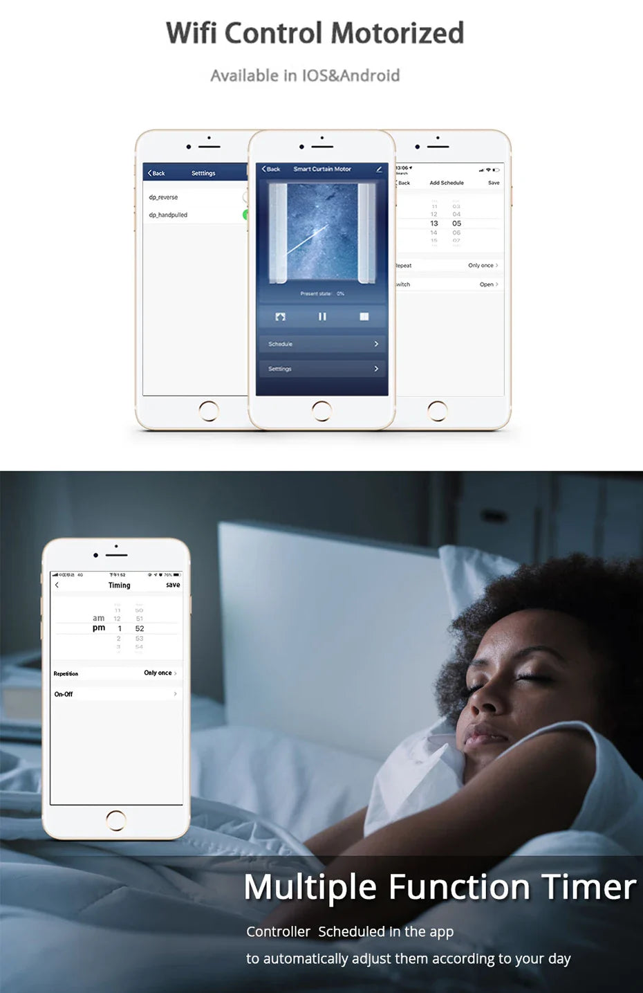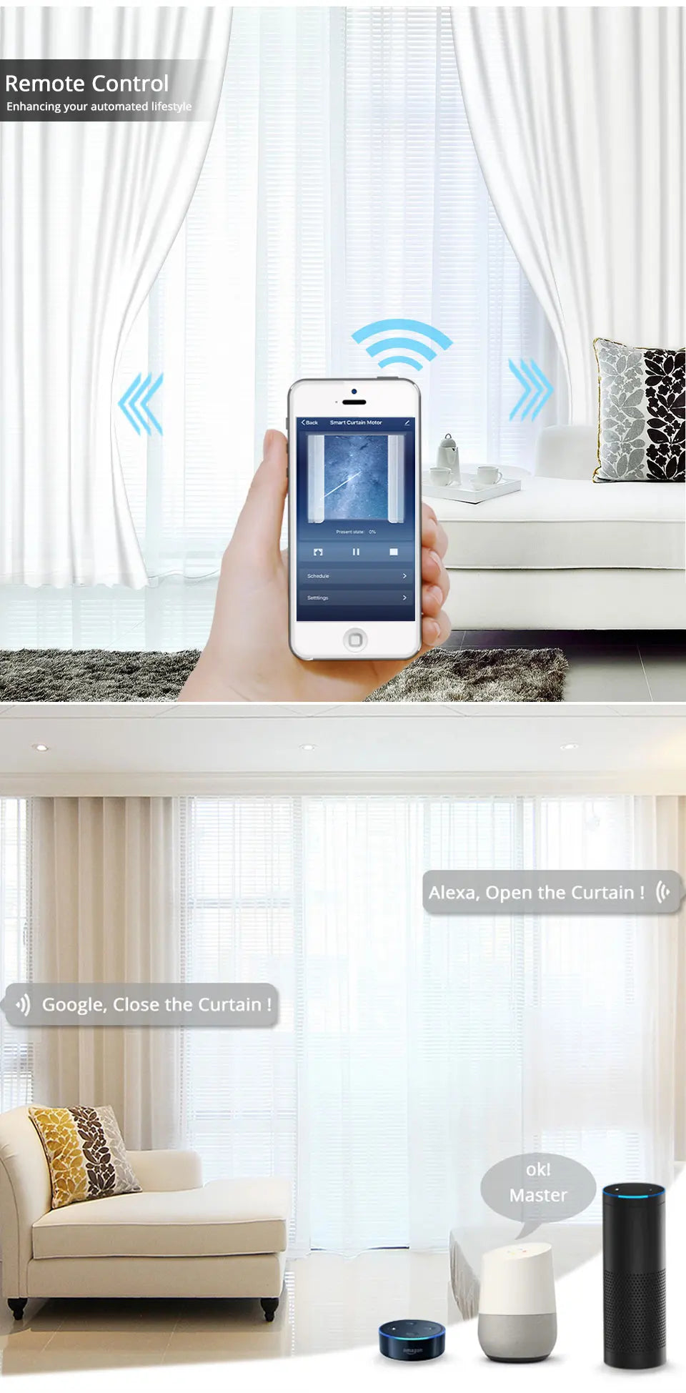 Il nostro binario per tende motorizzato smart WiFi è progettato per integrarsi perfettamente con il tuo stile di vita digitale. Grazie alla compatibilità con le app Tuya e Smart Life, puoi gestire l'apertura e la chiusura delle tue tende direttamente dal tuo smartphone o tablet, sia iOS che Android. Ma non finisce qui: questo sistema supporta anche i principali assistenti vocali come Amazon Alexa e Google Assistant. Ciò significa che puoi controllare le tue tende semplicemente usando la tua voce, aggiungendo un livello di comodità senza precedenti. Non dovrai più preoccuparti di raggiungere interruttori o tirare cavi: la gestione delle tende sarà sempre a portata di mano o di voce.