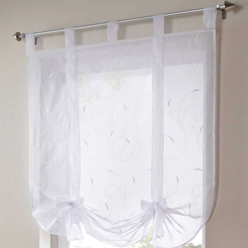 Immagina la luce del sole filtrare dolcemente attraverso il tessuto bianco, illuminando gli eleganti ricami a motivi floreali rossi che danzano sulla superficie. I vivaci nastri rossi, non solo aggiungono un tocco di colore audace, ma permettono anche di regolare facilmente l'altezza della tenda, creando diverse atmosfere. Che tu voglia massimizzare la luce naturale o goderti un po' più di privacy, la nostra tenda a pacchetto con nastri rossi si adatta alle tue esigenze con un semplice gesto. I fiocchi decorativi rossi sul fondo della tenda aggiungono un ulteriore elemento di charme, rendendola un vero e proprio pezzo d'arredo.