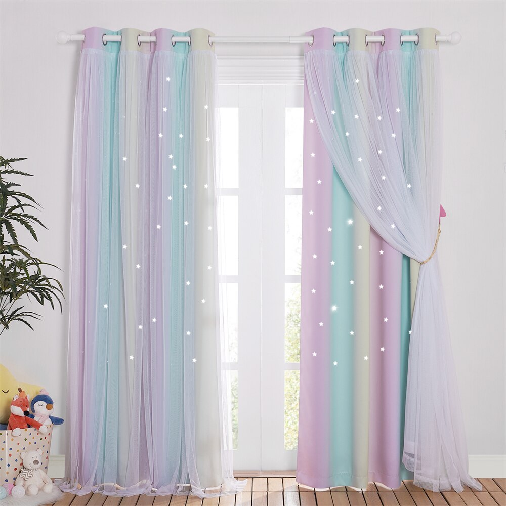 Ogni bambina merita uno spazio speciale dove poter sognare ad occhi aperti, e questa tenda arcobaleno con stelle per bambina è pensata proprio per questo. Non solo decora la stanza con stile e allegria, ma filtra anche delicatamente la luce, creando un'atmosfera calda e accogliente. Il tessuto multistrato, con uno strato opaco colorato e uno strato di tulle trasparente con le stelle, permette di modulare la luminosità a seconda delle esigenze. Al mattino, la luce che filtra attraverso i colori pastello renderà il risveglio più dolce, mentre di notte, le stelle sembreranno brillare, cullando la tua bambina verso un sonno sereno. È un regalo che va oltre il semplice oggetto, offrendo emozioni e momenti indimenticabili.
