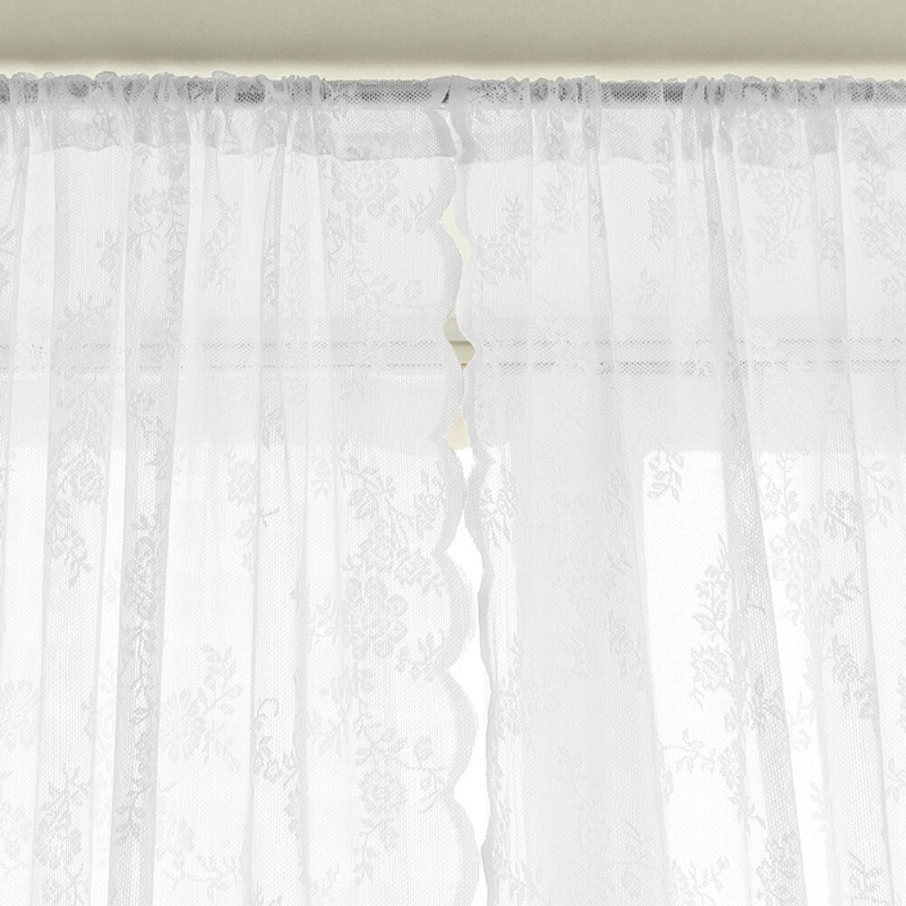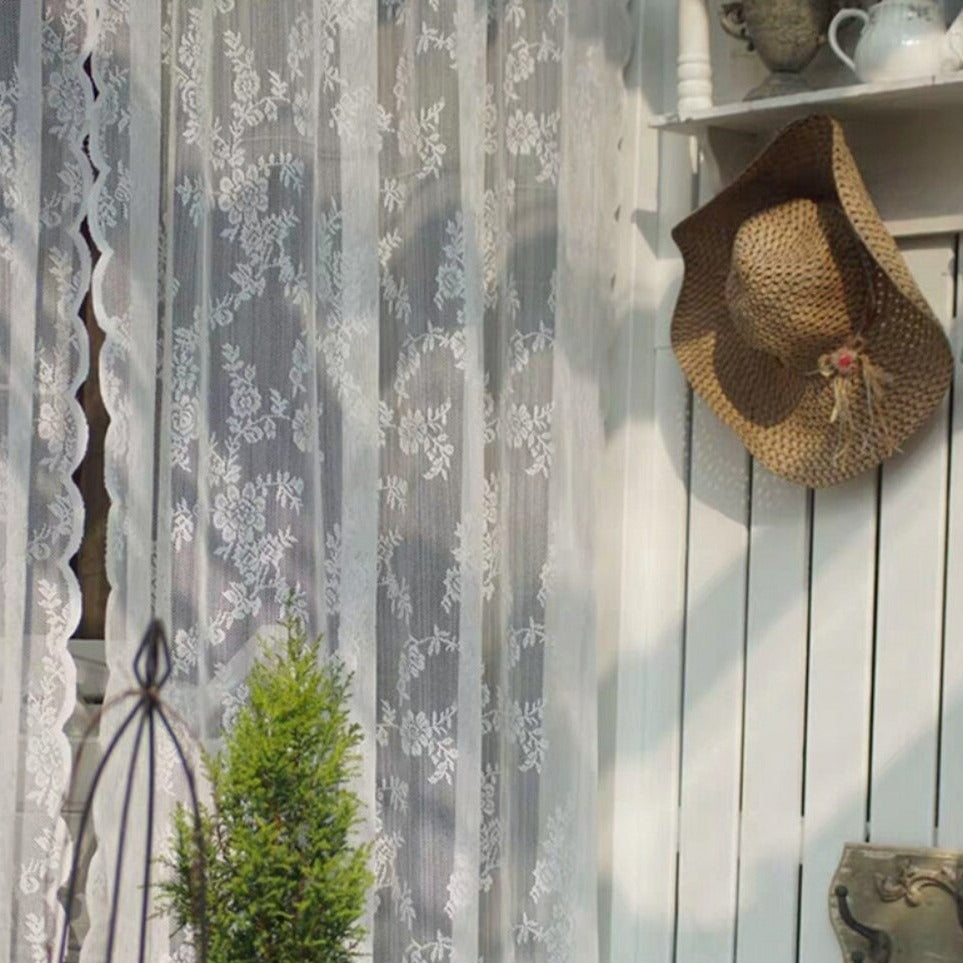 - **Design Elegante:** Il pizzo bianco con motivo floreale aggiunge un tocco di raffinatezza senza appesantire l'ambiente.