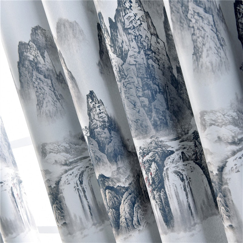 Scopri la Tenda design con paesaggio stampato grigio per un Ambiente Rilassante