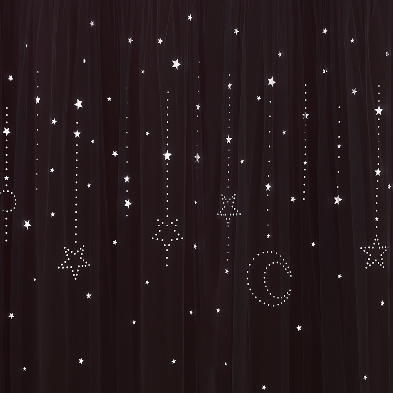 - **Design a doppio strato:** Tenda oscurante interna e velo decorativo esterno con stelle.