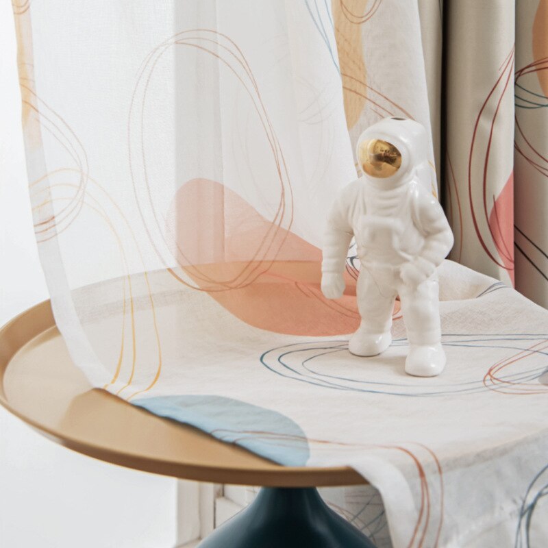 - Istruzioni per la cura: Scuoti o aspira delicatamente le Tende regolarmente. Lava con un ciclo delicato se necessario e appendile umide per evitare pieghe. Evita l’esposizione prolungata al sole per mantenere i colori..