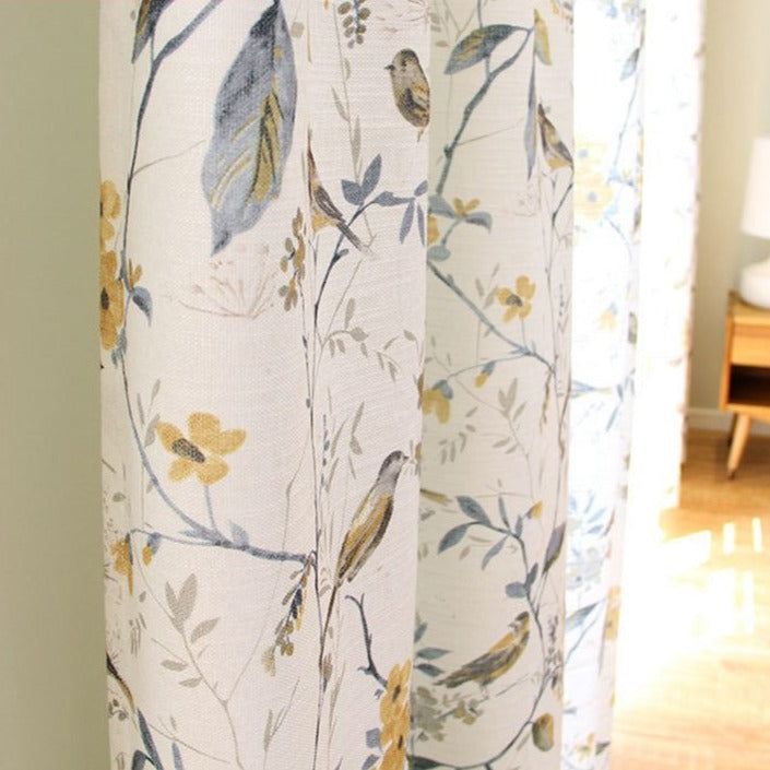Tenda in lino con uccelli: Eleganza Naturale per la Tua Casa