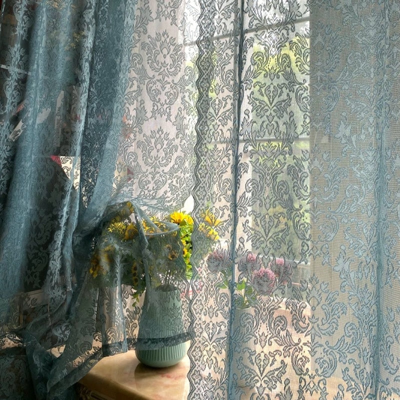 Tenda in Pizzo Stile Barocco Blu: Eleganza senza tempo per la tua Casa