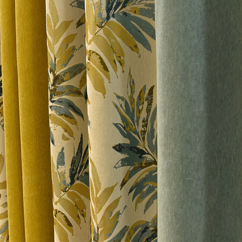 Immergiti nell'atmosfera rilassante della natura con la nostra splendida tenda oscurante con motivo a foglie. Questa tenda non è solo un elemento funzionale per la tua casa, ma un vero e proprio pezzo di design che aggiunge un tocco di freschezza e sofisticazione. Immagina la luce soffusa che filtra delicatamente al mattino, trasformando la tua camera in un'oasi di tranquillità. Le tonalità vivaci del giallo senape e le sfumature di verde acqua e grigio si fondono armoniosamente, creando un contrasto accattivante che ravviverà qualsiasi ambiente, dal soggiorno alla camera da letto.