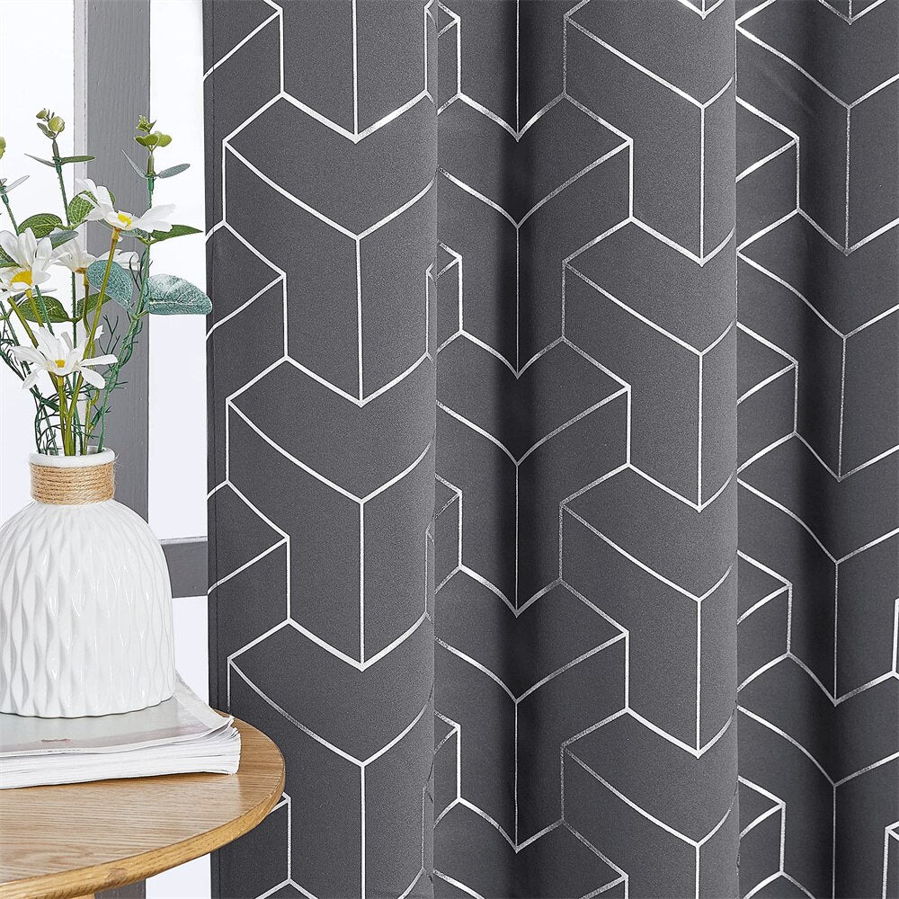 Scopri la Tua Nuova Tenda Oscurante Grigia Motivo Geometrico Argentato