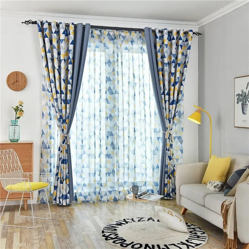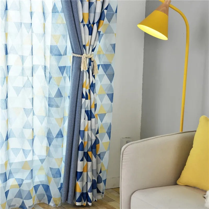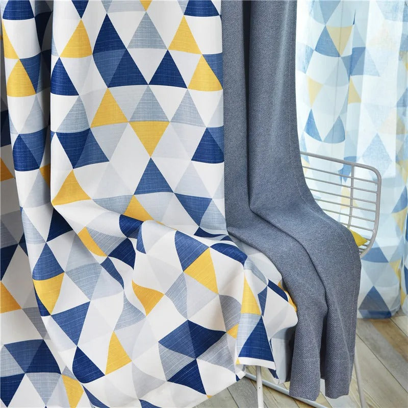 Immagina di trasformare il tuo salotto in un'oasi di stile e comfort con la nostra tenda oscurante moderna con motivo geometrico. Questa tenda non è solo un elemento funzionale per regolare la luce, ma un vero e proprio pezzo d'arredamento che cattura lo sguardo. Con i suoi vivaci triangoli blu, gialli e bianchi, porterà una ventata di freschezza e allegria in qualsiasi ambiente. Perfetta per chi ama il design contemporaneo e desidera aggiungere un tocco di colore e personalità alla propria casa. Non limitarti a coprire la finestra, ma vestila con un accessorio che parla di te e del tuo gusto per l'estetica.
