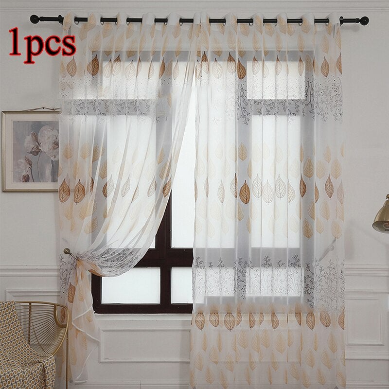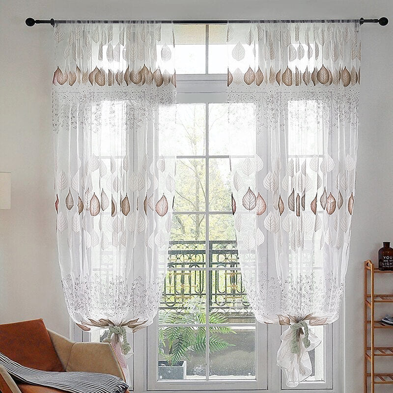 Tenda Velata a Foglie Color Caffè: Eleganza Naturale per la Tua Casa