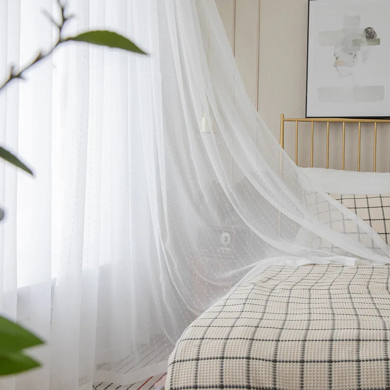 Immagina la tua stanza illuminata da una luce soffusa e calda, filtrata con delicatezza. La nostra tenda velata con motivo a pois è l'accessorio perfetto per trasformare qualsiasi ambiente in un rifugio di tranquillità ed eleganza. Il suo design delicato, arricchito da pois discreti ma affascinanti, aggiunge un tocco di giocosità e raffinatezza, rendendola ideale per la camera da letto, il soggiorno o la cameretta dei bambini. Non è solo una tenda, ma un vero elemento d'arredo che veste le tue finestre con un velo di charme senza tempo.