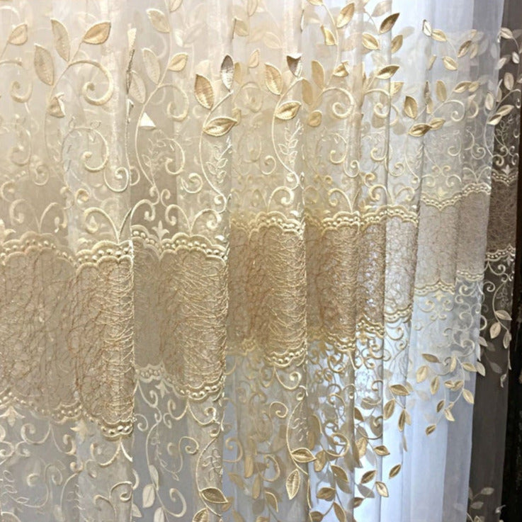 Tenda velata elegante con ricami dorati: Eleganza e Luminosità per la Tua Casa