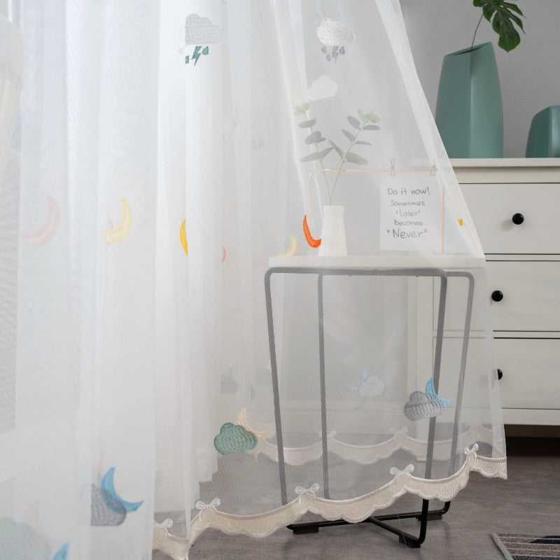 Immaginate la cameretta dei vostri bambini trasformarsi in un angolo incantato, dove la luce filtra dolcemente e allegri ricami danzano sulle pareti. La nostra tenda velata per bambini ricamata è proprio questo: un elemento d'arredo che unisce funzionalità e design, creando un'atmosfera serena e stimolante. Con le sue graziose decorazioni a forma di cactus, mezze lune colorate e nuvolette, questa tenda è pensata per stimolare la fantasia dei più piccoli, rendendo il loro spazio personale ancora più accogliente e divertente. È perfetta per chi cerca un dettaglio unico e delicato, capace di completare l'arredamento con un tocco di dolcezza.