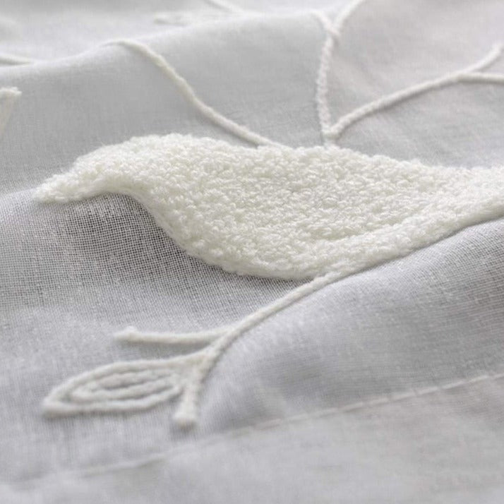 Tenda Voile Ricamata con Uccellini Naturali