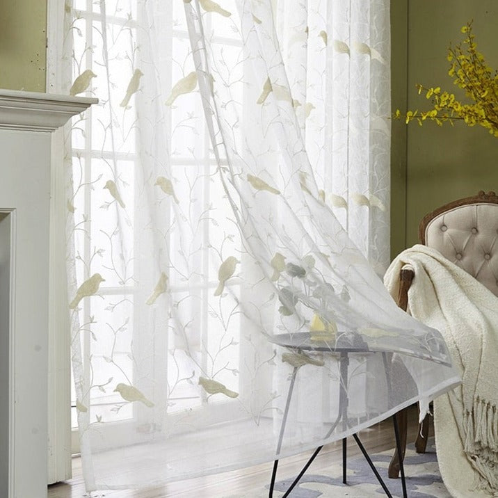 Tenda Voile Ricamata con Uccellini Naturali: L'Incanto della Natura a Casa Tua
